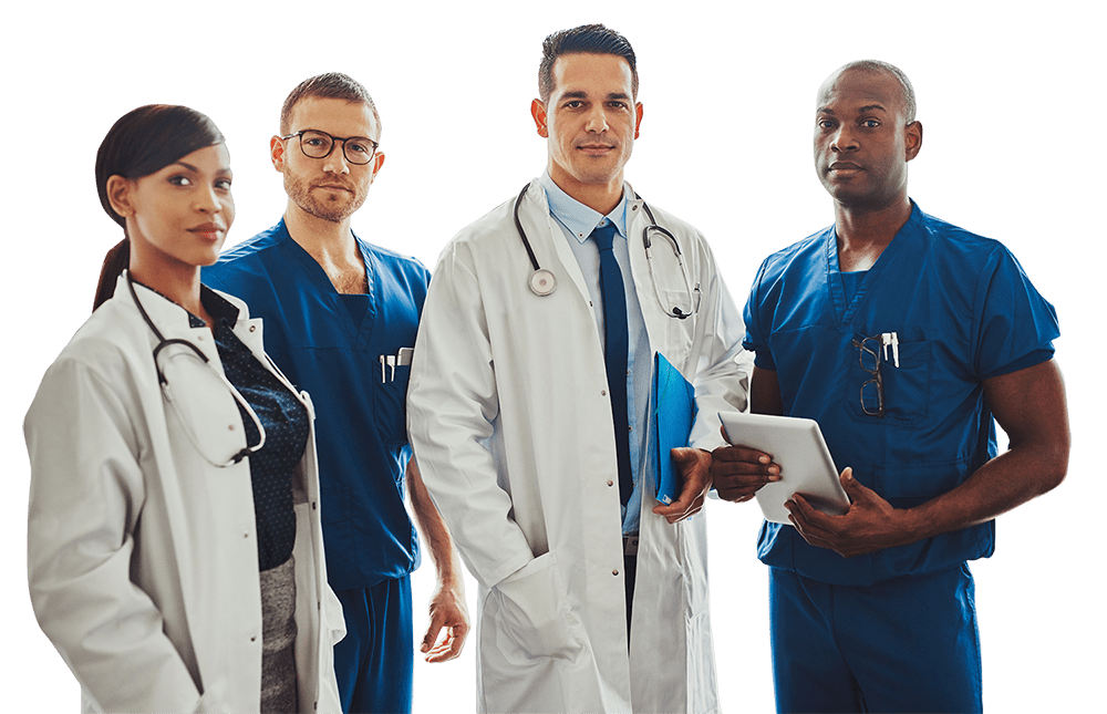 Equipe com médicos, psicólogos e terapeutas